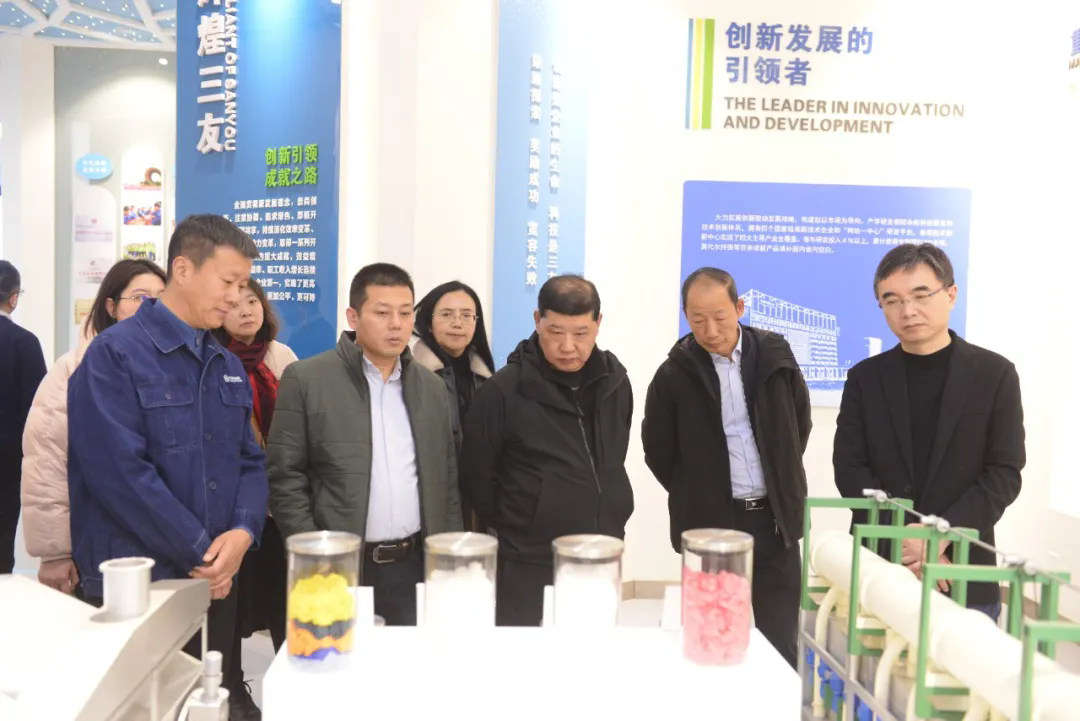 在听取介绍后,端小平副会长对三友集团的发展思路及突出成效给予了充分肯定。他表示,三友集团脚踏实地,行稳致远,在产业提质增效升级上走出了一条特色发展之路。三友化纤的创新理念、生态理念和运行模式具有时代特色,很有竞争力。他鼓励三友化纤进一步提升研发实力,不断挖掘新的增量市场,抢占前沿制高点,赢得更多主动权。中国纺织工业联合会会一如既往地支持三友事业,充分发挥自身资源优势,为企业搭建更多平台、提供更好服务、探索更多路径,推动行业更好进步,助力三友实现高质量发展。